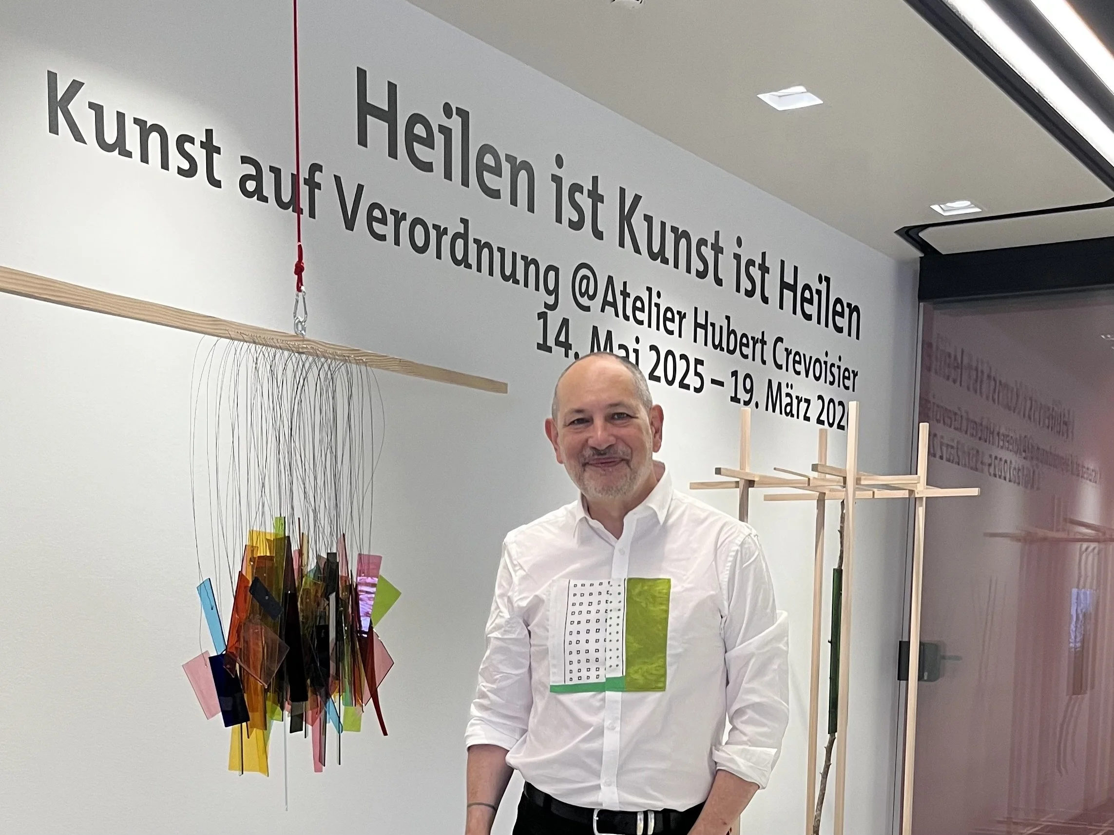 Au cœur du hall d’entrée, la commission culturelle de l’Hôpital cantonal des Grisons à Coire (KSGR) invite les patient·e·s, le personnel soignant, l’ensemble des collaboratrices et collaborateurs ainsi que les visiteuses et visiteurs de l’institution, à un dialogue empathique avec le vivant, joyeux et coloré de la matière.